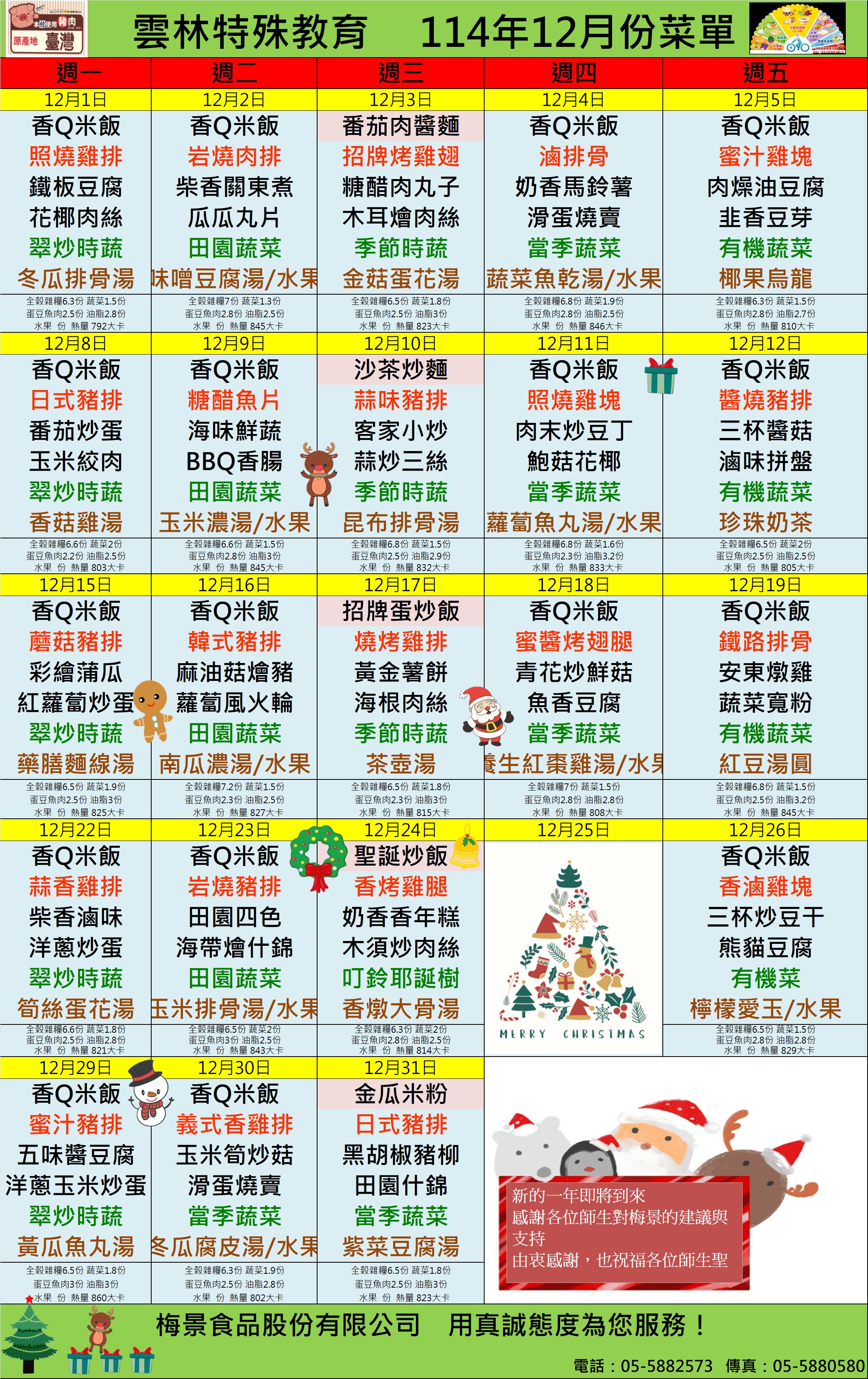 每月菜單
